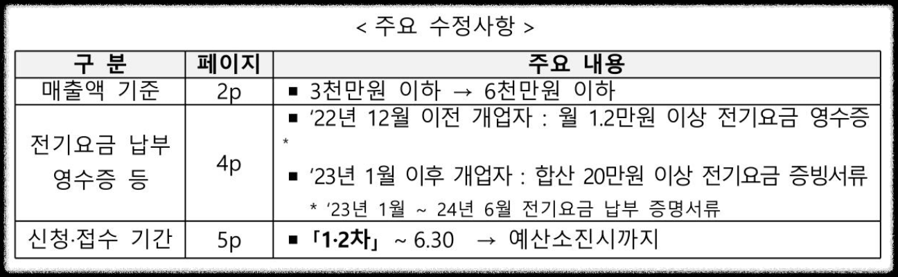 - 22년 12월 이전 개업하신 분: 월 12,000원 이상 전기요금 영수증