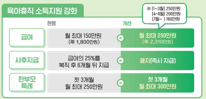1. 육아휴직 급여 최대 250만 원으로 인상