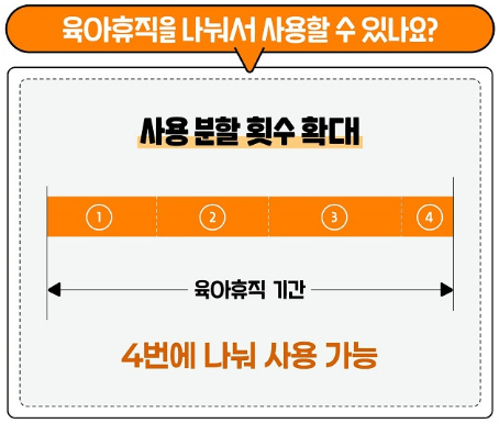 - 육아휴직을 최대 4회까지 나누어 사용할 수 있습니다.