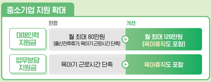중소기업 직원들의 육아휴직 사용을 돕기 위한 지원도 강화됩니다.